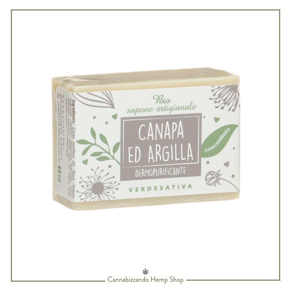 Sapone vegetale Argilla dermopurificante per pelli impure. Prodotto artigianale. Tagliato a mano. 100% eco naturale e bio degradabile. Olio di canapa 100% biologico.