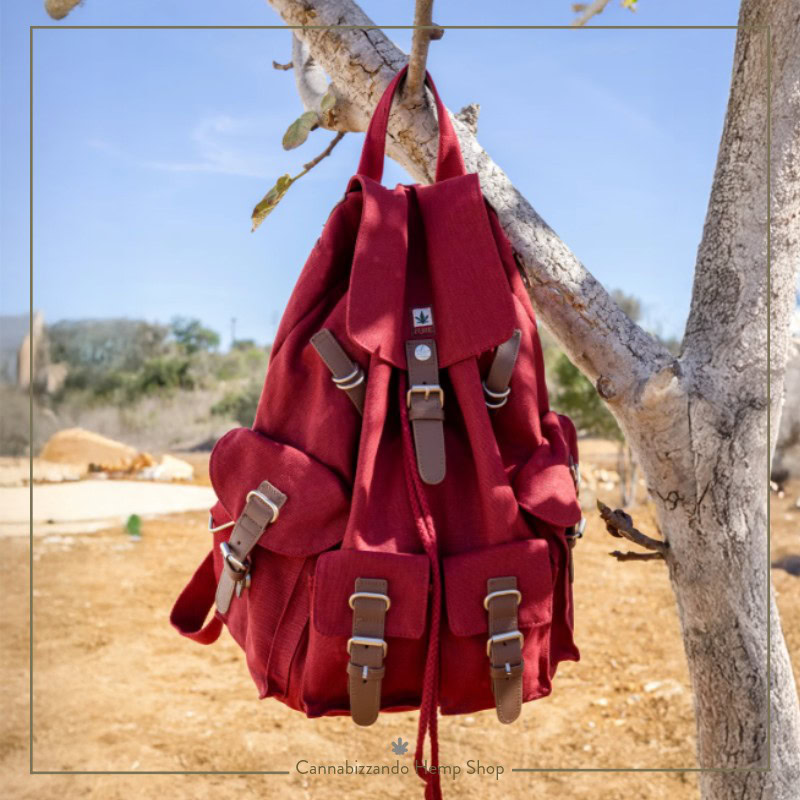 Materiale: 55% canapa / 45% cotone bio, inserti in cuoio.